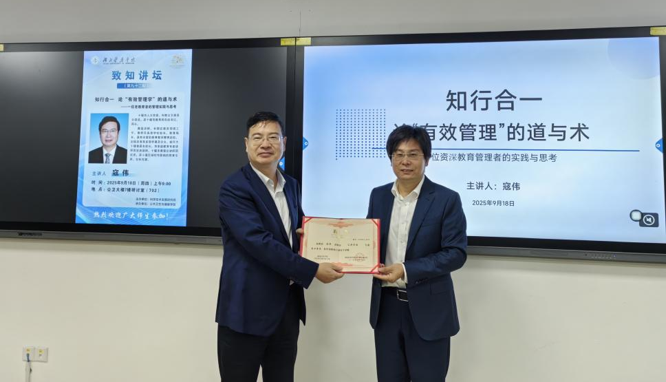 本网讯(通讯员 薛硕)为深化公共管理学科师生对管理实践的认知,助力研究生教育高质量发展,9月18日上午,公共卫生与健康学院特邀十堰市人大常委、科教文卫委员会委员,原十堰市教育局党组书记、局长、高级讲师寇伟老师莅临我院,开展主题为《知行合一 论“有效管理”的道与术》的专题讲座。公共管理学科相关教师、公共管理及图书情报专业研究生参会,活动由公共卫生与健康学院副院长邬闻文主持。