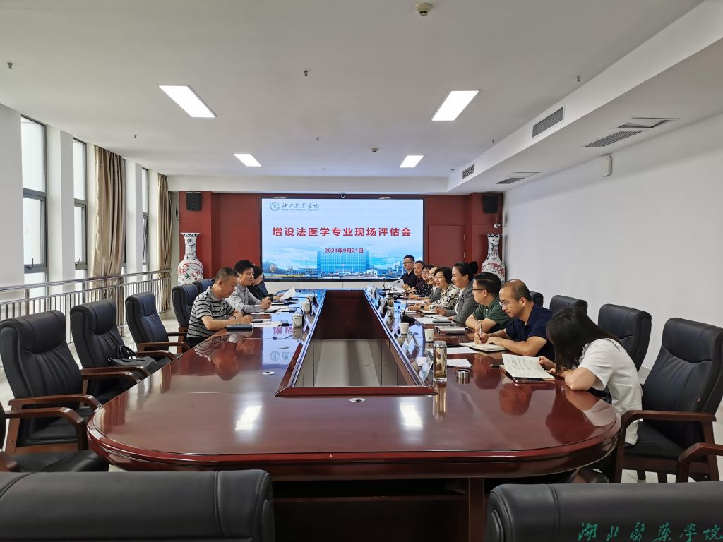 本网讯(文/朱雯 喻言欣 图/何志凯 丁演鹂)9月21日,由湖北省卫健委科教处处长张有元、华中科技大学同济医学院法医系副主任刘茜和武汉大学中南医院司法鉴定所主任鲁植艳组成的法医学专业设置现场评估专家组,对我校申报设置法医学专业进行现场评估。党委书记郑丹凤,党委常委、统战部部长谭艳,教务处和基础医学专业负责人参加评估汇报会。评估会由谭艳主持。