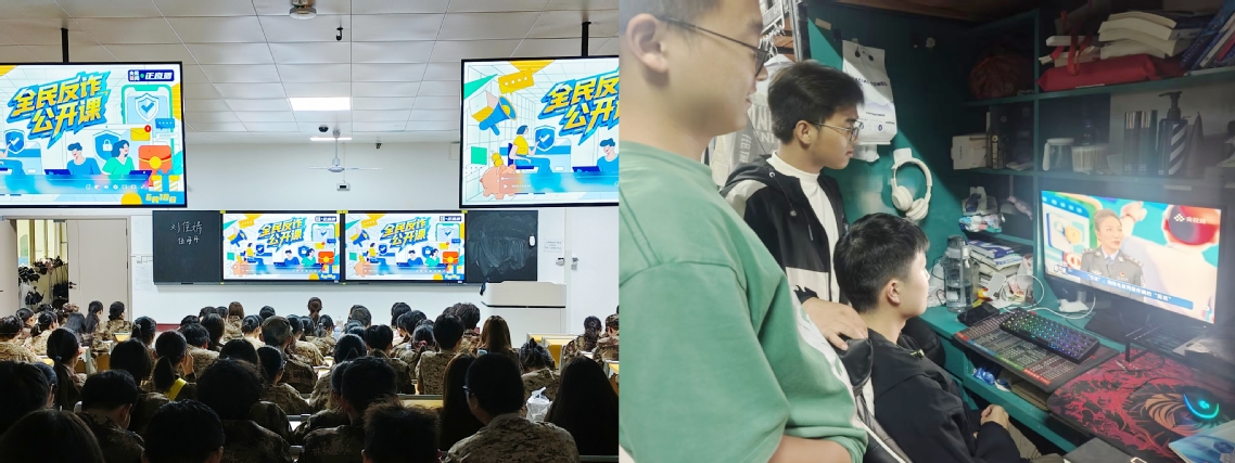 共学一场“反诈大讲堂”。组织全校师生关注国家反炸中心微信公众号,并直播学习由公安部刑侦局联合央视频开展的《全民反诈公开课》。学习结束后,部分师生还就防范电信网络诈骗等网络安全相关话题进行了交流讨论,确保安全教育入脑入心。