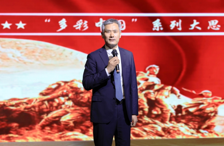 这堂大思政课,分为“红色·鄂西北”“红色·新时代”“红色·中国心”“红色·湖医药”四个篇章。罗杰以“赤诚为民——医学人的生命与天命”为题开讲,分享其亲身经历的抗疫斗争故事,让师生感受到团结与信念的磅礴伟力。随后,8位主讲人逐一上台,深情讲述峥嵘岁月里的党史及新时代的奋进故事。从鄂西北这片红色热土上早期党组织的建立,到红二十五军英勇无畏的战斗;从激情燃烧的三线建设岁月,到新时代乡村振兴与精准扶贫的伟大实践;从美国友人杰克对中国文化的热爱与传播,到少数民族辅导员阿卜用爱心浇灌民族团结之花;从桂世澄教授半个世纪坚守诠释的医者仁心,到王家宁教授忠于祖国、心怀母校的从医故事……在场师生被一个又一个真挚的故事所震撼,现场掌声不断响起。除了鲜活生动的故事外,课堂还穿插了歌舞表演、武术、合唱等文艺展演,让大思政课更加有深度、有情怀、有温度。舞蹈《万泉河水清又清》表演者拿着斗笠与篮子相送娘子军,悠扬的音乐与动人的舞姿体现深深的军民情。歌舞《青春畅想》用欢快激扬的旋律和青春洋溢的舞蹈展现青年的激情澎湃。18名留学生演绎的武术《极韵武当》用刚柔并济的招式展现了和合天下、兼容并蓄的中华优秀传统文化理念。大学生和小学生合唱的《理想》唱出了对梦想的美好期待。最后,全场师生合唱《没有共产党就没有新中国》,用激昂的歌声表达传承红色精神、接续拼搏奋斗的坚定信念。