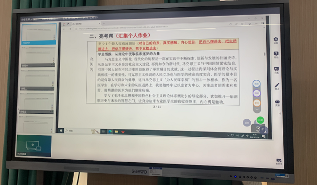 《毛泽东思想和中国特色社会主义理论体系概论》课程融合了其他思政课程的内容,并拓宽了人文社科知识面,只有这样才能真正体现出本课程的教学目的和意义。在卓越医师班的课堂上,教师和学生并不拘泥于课本知识。他们将眼光投向更宽广的课外知识,并在恰当时候补充课外哲学知识、“四史”知识等,构建更加宏伟的知识框架体系。