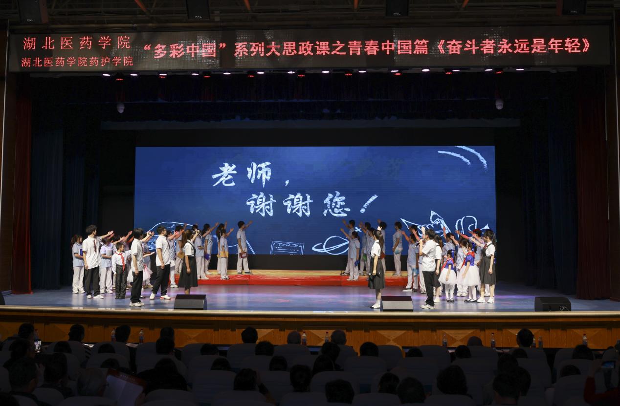 将文艺有机融入思政课教育,打造“多彩中国”系列大思政课。课堂上,既有一个个感人至深的小故事,还有情到深处的歌舞表演、情景再现,将思想理论的亲和力和感染力推到高潮。《守望·中国南水》大思政课为了烘托现场氛围,《如水倾城》舞蹈节目中宛如江鹭般翩然入场的舞者们用曼妙质朴的舞姿勾勒出人与自然和谐相处的美丽图景,郧西三弦《丹水橘香》曲调优美的演奏展现了南水北调水源核心区独特的地域文化和人文风情,情景歌舞《一江深情》深情演绎了库区移民舍小家为大家、远离故土时捧一捧泥土寄托思乡之情,大合唱《和光同尘》唱出守护丹江口库区每位志愿者的点滴奉献,让青年学生感动万分。《奋斗者永远是年轻》大思政课中,情景舞蹈《革命人永远是年轻》、音诗画《老师,谢谢您》、歌曲《少年般绚丽》、大合唱《祖国不会忘记》等精彩节目有效丰富了课堂形式,增加了思政教育的温度,产生了良好的教育效果。