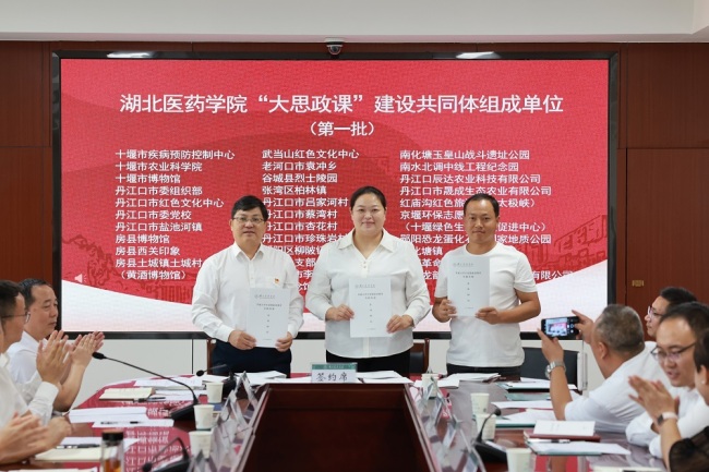 9月25日,湖北医药学院与汉江流域31家单位共建“大思政课”教育共同体。在当天举行的“大思政课”实践基地共建座谈会上,学校与各共建基地共同签订《共建大学生思想政治教育实践基地合作协议》,并颁发湖北医药学院大学生思想政治教育实践基地匾牌。学校还聘任了各基地共41人为湖北医药学院思政课兼课教师。