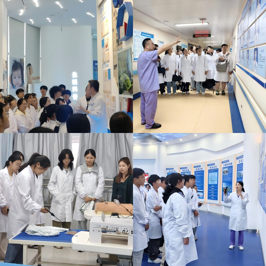 简短的欢迎仪式结束后,新生分组依次参观直属附属人民医院生殖医学馆、航空医学馆、临床研究所及人民校区临床技能实训中心,近距离了解航空救援医学的发展,提高对生殖医学知识认知;参观临床医学研究所、实训室及教室文化廊,帮助学生全方位感知未来临床学习与成长的坚实保障。最后,同学们还走进儿童医疗中心和心血管内科,透过医师忙碌的身影和一面面患者的感谢信,感受“治病救人、救死扶伤”的“医师”所代表的责任与荣誉。