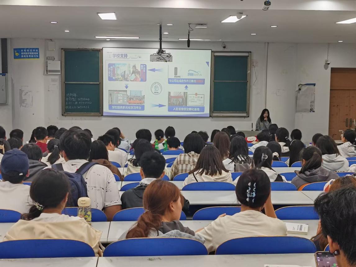 宣讲会邀请多位在国家级、省级竞赛中获奖的团队代表,从项目选题、团队组建、资源整合到路演展示等环节进行经验分享。他们结合个人科创成长历程,生动展现从0到1的探索路径,有效激发了同学们的参与热情与创新意识。活动尾声,主持人围绕“挑战杯”“中国国际大学生创新大赛”等重点赛事政策进行精准解读,帮助同学们把握参赛要点与备赛节奏,引导大家结合专业方向合理规划、精准发力。现场互动频繁,气氛热烈。