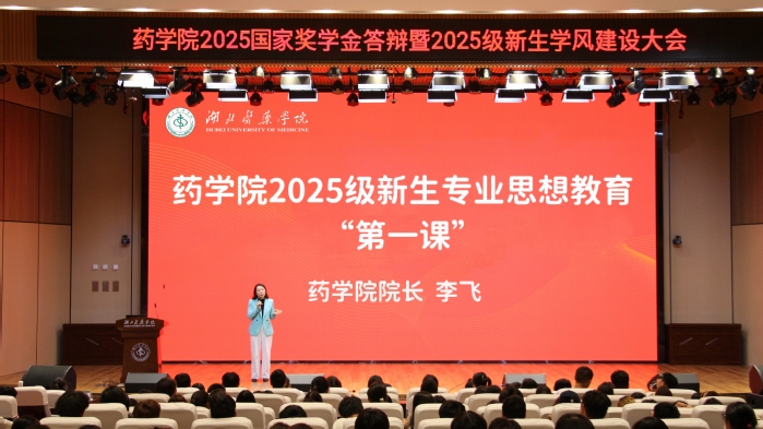 本网讯(通讯员 彭红星)为帮助药学院2025级新生深入了解专业内涵、明确学习目标、科学规划大学生涯,9月26日下午,药学院开展2025级新生专业思想教育“第一课”。药学院院长李飞、党委副书记廖婧羽、各科室负责人、教研室主任、辅导员及2025级全体新生参加此次活动。