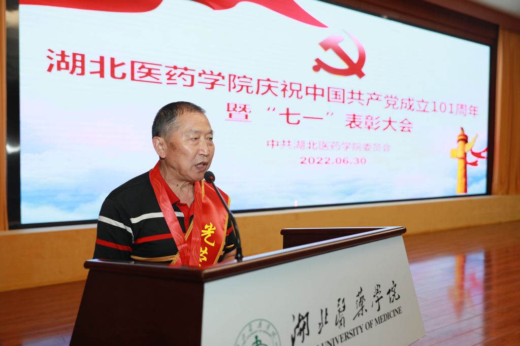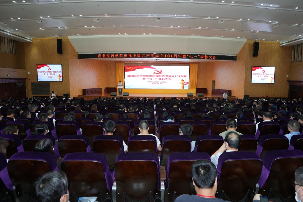本网讯(文/鲍晓宇 图/鲍晓宇 刘成臣)6月30日下午,湖北医药学院庆祝中国共产党成立101周年暨“七一”表彰大会在科教楼学术报告厅举行,退休老领导、光荣在党50年老同志,全体校领导、全体职工党员,学生党员代表齐聚一堂,共同庆祝党的生日。大会由校党委副书记、校长李和主持。