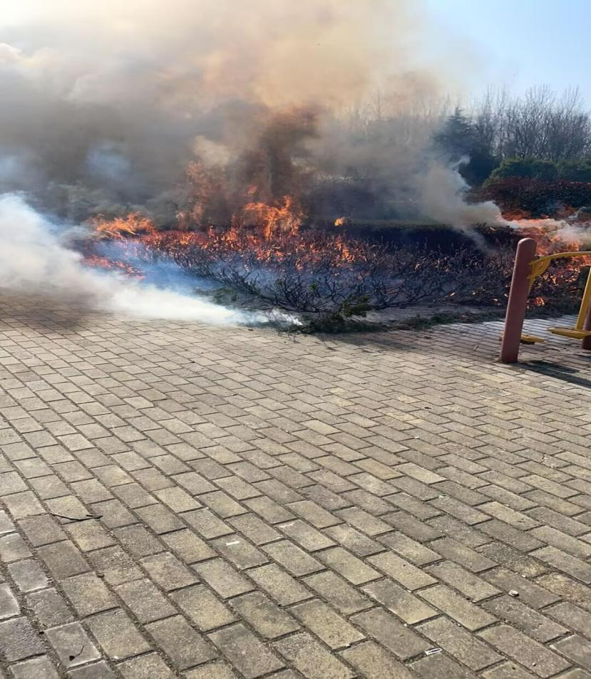 “那天我正在家中收拾行李,突然闻到刺鼻的焦糊味,从窗口望去,小区中央广场灌木丛已窜出火苗。起初我以为是物业在定点焚烧一些树木杂枝,跑到现场后,发现火舌正沿着绿化带向居民楼蔓延。”豆智回忆道。