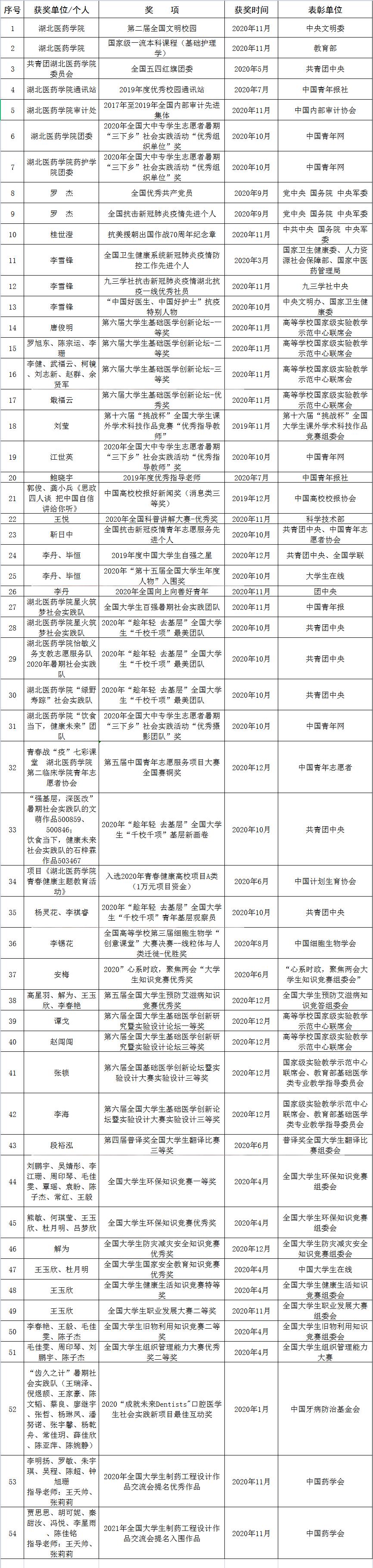 湖北医药学院2020年度国家级荣誉-凯时和尊龙凯时