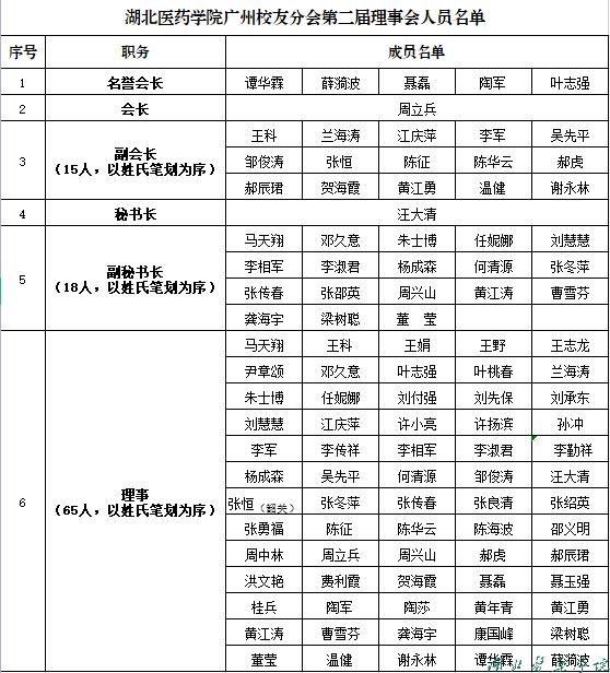本网讯(通讯员 陈雪阳)11月30日下午,湖北医药学院广州校友分会换届大会暨校友联谊活动在广州阳光酒店一楼国际会议中心举行,300余名广州地区校友代表齐聚一堂,其乐融融。校党委书记郑丹凤,原党委书记、校友会名誉会长涂汉军,杰出校友、中国工程院院士刘超出席活动。会议推选产生新一届广州校友理事会,周立兵任会长、汪大清任秘书长。