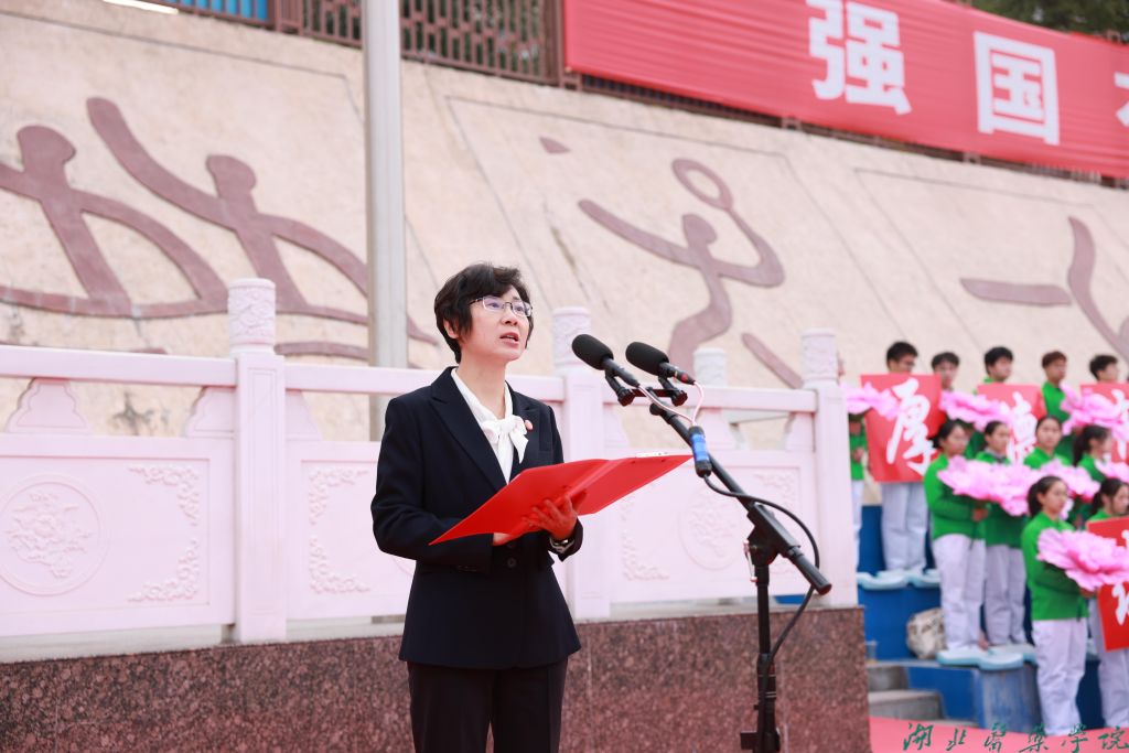 早上7点10分,湖北医药学院田径运动场上花海翻涌、歌声激昂。全体校领导、历任校领导、市内附属医院领导班子成员、离退休老领导、校友代表、学生代表以及教职工代表等共上千名师生齐聚于此,参加“躬耕不辍传薪火,矢志笃行谱新篇”59周年校庆主题升旗仪式暨建校60周年庆典倒计时一周年启动仪式。