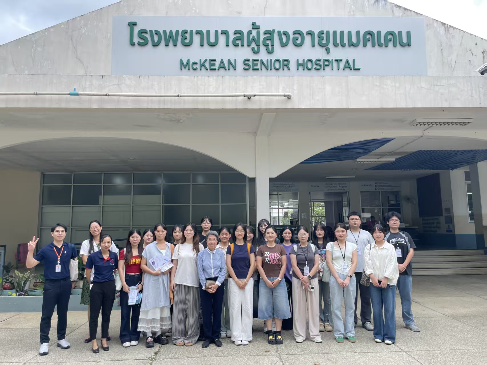 在理论学习之外,同学们还走进mckean老年中心,考察综合养老设施管理体系,学习“医养结合”的本土化实践经验;探访suan prung精神病院,通过电休克疗法(ect)观摩、儿童及青少年精神科病房巡查,了解泰国精神卫生护理的规范化流程与人文关怀细节;在don kaew分区社区医院的泰国传统医学诊所,亲身体验草药调理、传统按摩等特色项目,见证传统医学与现代护理的创新融合,了解了泰国分级诊疗体系与社区健康服务模式。
