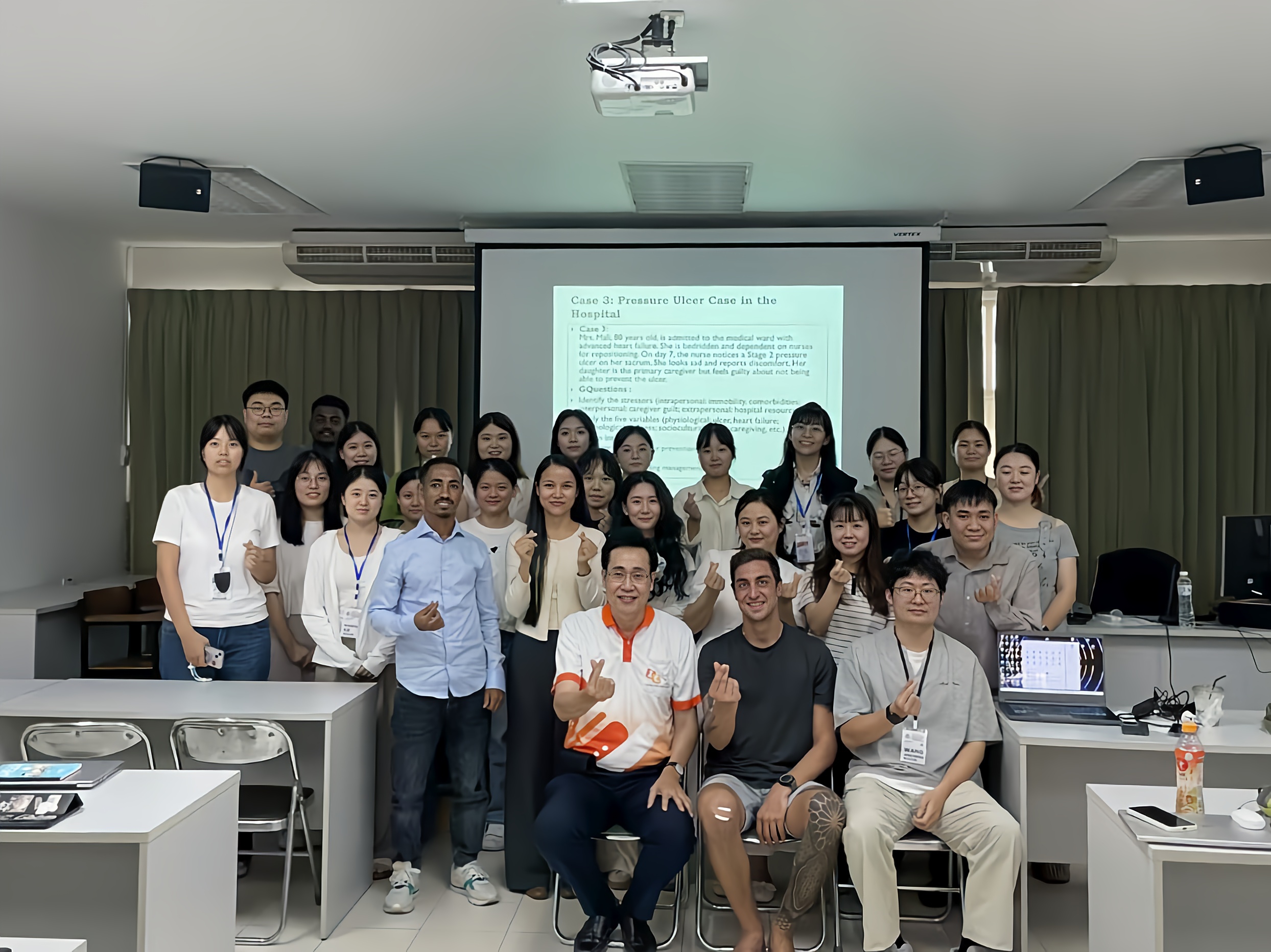在泰期间,同学们在清迈大学护理学院接受了系统的专业训练,通过“护理研究方法基础”与“护理研究伦理、工具与应用”两门课程,同学们接受了从研究设计到数据收集的专业指导。此外,学生们还参加了一系列专题讲座,内容涵盖泰国医疗卫生体系、社区健康促进、母婴护理及精神健康护理等多个领域。