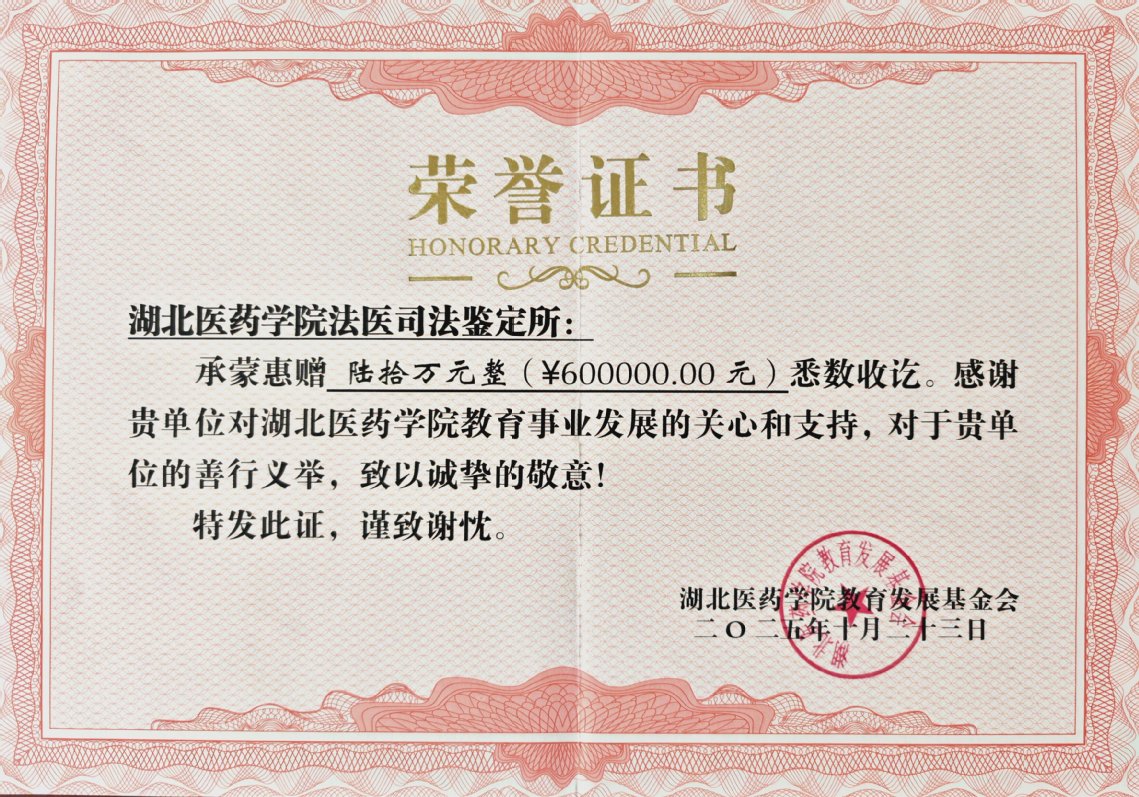 本网讯(通讯员何志凯)在学校即将迎来建校60周年华诞之际,湖北医药学院法医司法鉴定所向湖北医药学院教育发展基金会捐赠60万元资金,专项用于学校教育事业的发展。湖北医药学院法医司法鉴定所是2006年经湖北省司法厅批准成立、设立在公立高等院校内的法医司法鉴定机构。目前,法医司法鉴定所已连续5年向学校累计捐赠经费235万元。