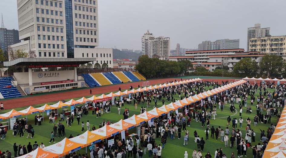 11月7日上午,湖北医药学院2024年秋冬季校园供需见面会在该校田径运动场举行。