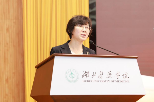 表彰仪式后,郭兴荣教授、郗雪艳教授分别代表“湖医药科学家”和“湖医药学者”发言。“如果有人问我‘大器晚成’的秘诀,我想,可以总结为三个词:热爱、协作与托举。”“科研不是孤独的远征,而是一场群体的奔赴。”“心怀敬畏,才能站稳讲台。”“想,都是问题;做,才有答案。”“使命在肩,所以勇毅前行。”两位教授分别结合自身经历,分享了科研教学道路上的感悟与经验,激励年轻教师勇于追梦、不懈奋斗。她们的发言金句频出,其中的深邃思考与真知灼见,引发了现场教师的强烈共鸣。