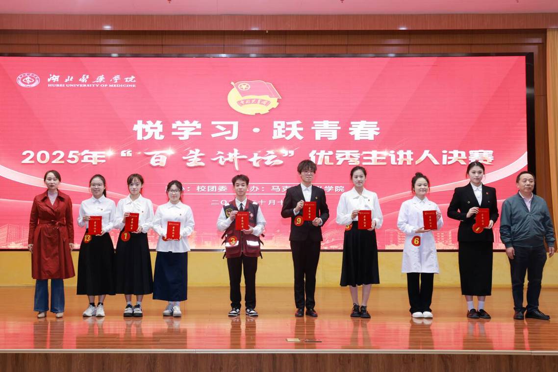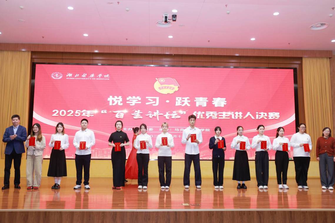 经过现场评比,第五临床学院李奕珩、夏启森,第一临床学院东艳佳、第二临床学院李忻骏获评校级“金牌主讲人”;第五临床学院史莹娥、药学院陈书情、第四临床学院盛玉琪、第一临床学院周蕴晗获评校级“银牌主讲人”;第三临床学院张舒瑶、护理学院张泽彦、第一临床学院张政淇、生物医学工程学院李仪轩、基础医学院陈丽娜、马克思主义学院周荣荣、口腔医学院苗昕瑞、公共卫生与健康学院陈海斌获评校级“铜牌主讲人”;王滢、胡愈瑶、周禹、王昱帆、夏可润、陈钰、李亚东、孙万发、蒋艾玲、熊美君、吴贝贝、王思源等12位同学获评校级“优秀主讲人”。
