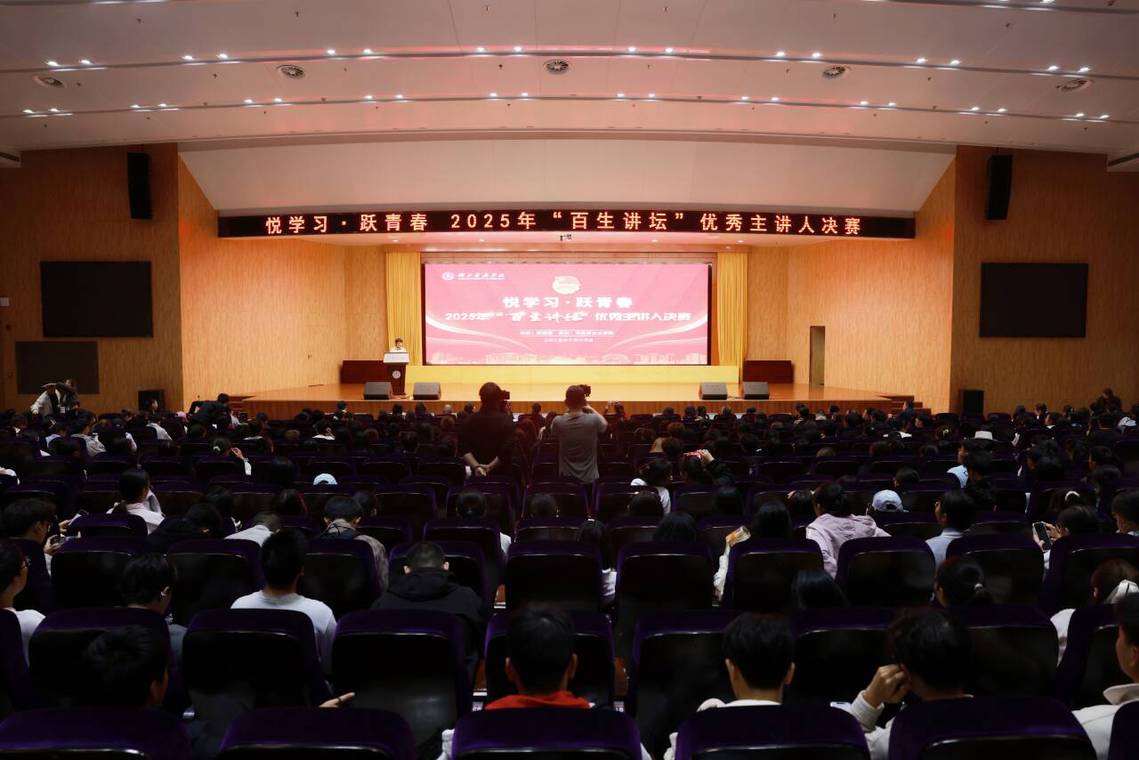本网讯(文/韩丽萍 图/郑语晨 杨贝熙 易琛杰 )10月16日下午,由校团委主办、马克思主义学院承办的2025年“悦学习·跃青春—百生讲坛”优秀主讲人校级决赛在科教楼一楼学术报告厅顺利举行。校党委常委、宣传部部长陈建龙出席活动,党委学工部、校团委、各学院分管学生工作领导、二级学院团委书记、2025年青马班、团校全体学员,及各学院300余名学生代表参加活动。