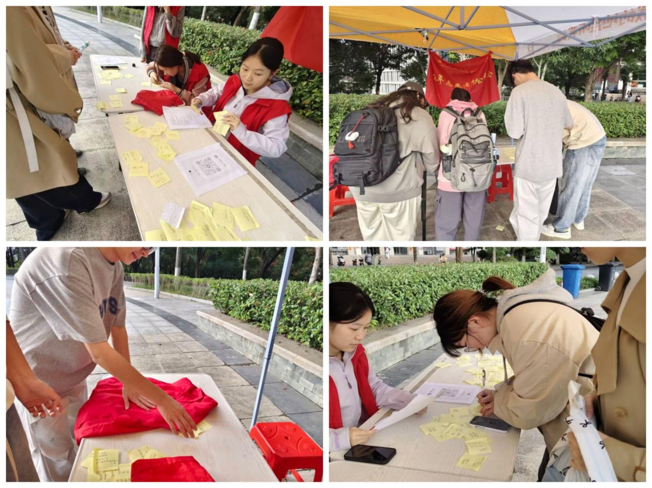 活动以三个板块层层递进,让关怀从心出发,映照于行。“暖心寄语,传递感情”中,参与者通过在便签纸上写下真诚的祝福与鼓励,给予视障朋友慰藉与支持;“知识考察,增进了解”知识问答环节,在增强趣味性的同时,也增进对视障人士的客观认知;“情景体验,换位思考”闭眼叠衣服等环节,让参与者亲身感受视障群体日常生活的艰辛,切身体会他们在黑暗摸索中的不易。