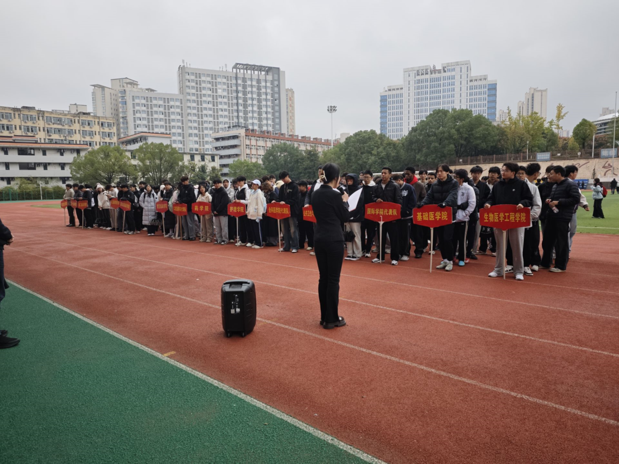 本网讯(通讯员 陈业史)10月21日中午,由校团委主办,第四临床学院、第五临床学院、国际教育学院、校足球协会共同承办的第十四届金秋科技文化艺术节之足球、排球赛在田径运动场举行开幕式。校团委书记邱爽、第四临床学院党委书记赵国新、第五临床学院党委书记陈飞、各学院分管学生工作领导、分团委书记及全校15个参赛队伍参加了活动。
