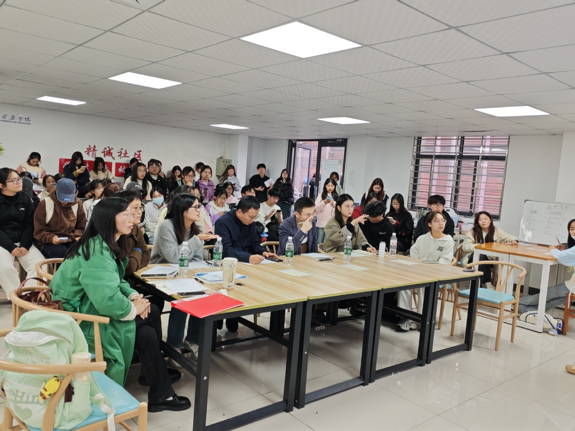本网讯(通讯员 江杉杉)为推动心理学专业与创新创业深度融合,引导学子将心理学科知识转化为服务社会的实践力量,11月3日下午,马克思主义学院2025年“创青春”大学生创业计划赛在精诚社区举行,学院党委副书记黄平、校团委郭俊等多位老师组成评委团,从项目创新性、可行性、社会价值等核心维度对答辩的8支团队进行评审。