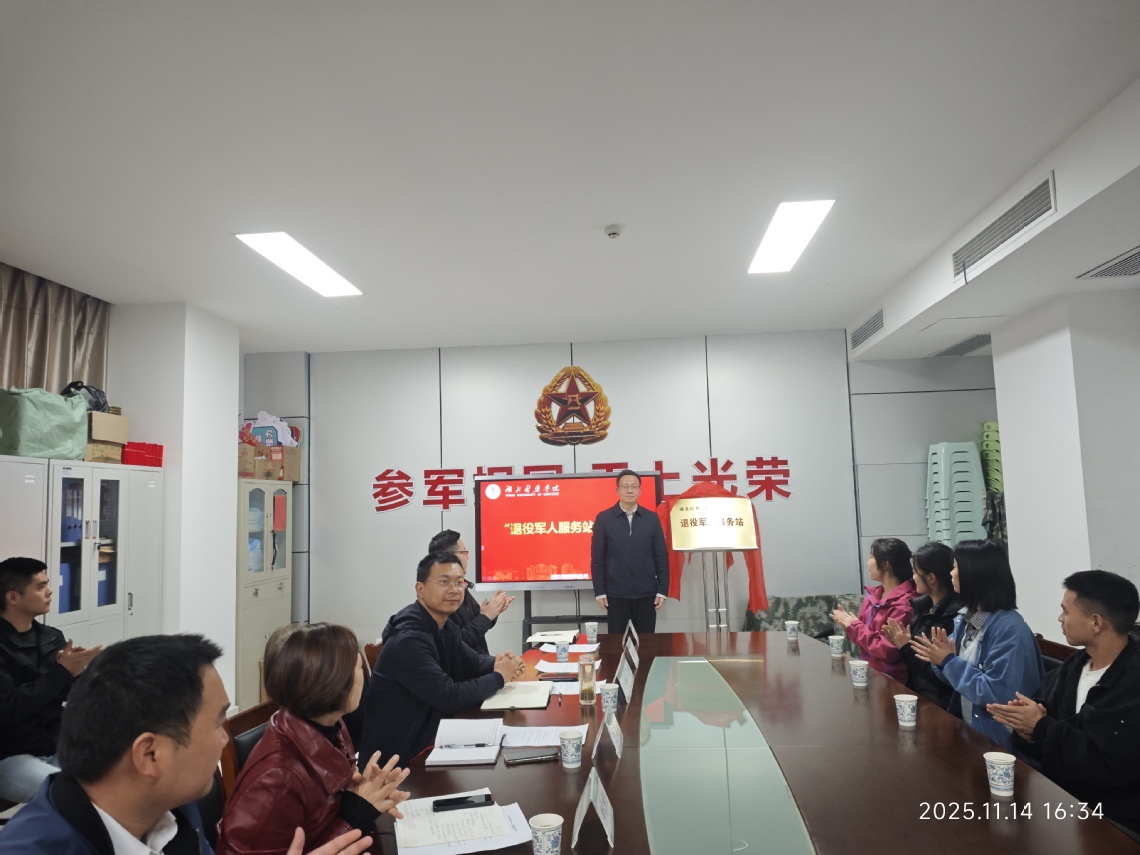 会议伊始,校党委常委、宣传部部长陈建龙为“退役军人服务站”揭牌。退役军人服务站将为退役大学生士兵提供更加精准、便捷、贴心的服务,成为退役学生在校园里的“温暖港湾”和“坚强后盾”。