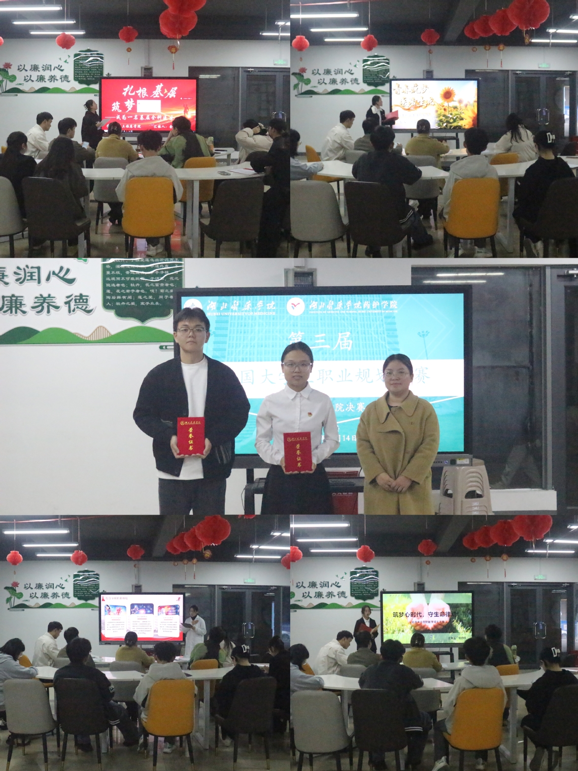本次职业规划大赛设成长赛道和就业赛道,经各班级初赛选拔,共推选出13名优秀选手参加学院复赛。成长赛道同学们运用swot等进行个人测试,主要结合职业目标、学习实践行动以及动态调整进行了详细的阐释。就业赛道选手从职业目标、岗位胜任力、发展潜力等方面进行现场汇报。在评委和hr面试团提问环节,评委们根据选手情况,就职业目标的合理性、职业能力评估、个人特质与职业发展的联系等方面进行了提问,选手们积极作答,沉着应对,展现了良好风貌。最终,2022级张舒瑶与2023级龚本胜分别获得就业赛道和成长赛道的一等奖。