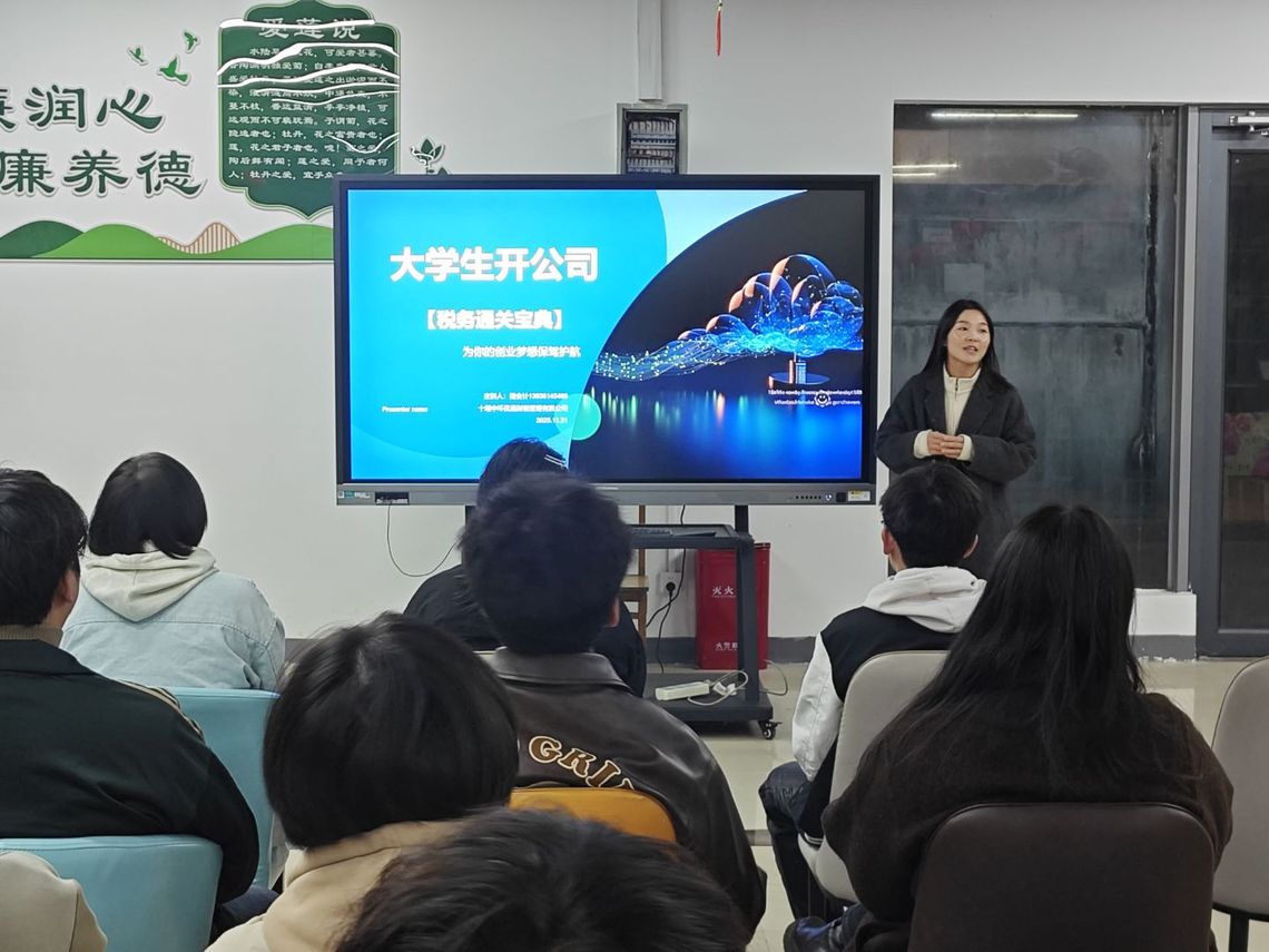 活动聚焦创业过程中的财税痛点,特邀十堰中环优嘉财税管理有限公司的储燕飞老师围绕税法基础知识展开分享:从小微企业纳税申报流程,到医药类创业项目的税务优惠政策,再到发票管理、风险规避等实操要点,内容贴合医药院校创业项目特点,现场还通过“案例拆解 疑问答疑”的形式,解答了“大学生创业税务减免申请”等团队关切的问题。分享尾声,指导老师张帆做总结:“财税合规是创业的‘安全带’,精准掌握政策能为项目发展‘轻装上阵’。”