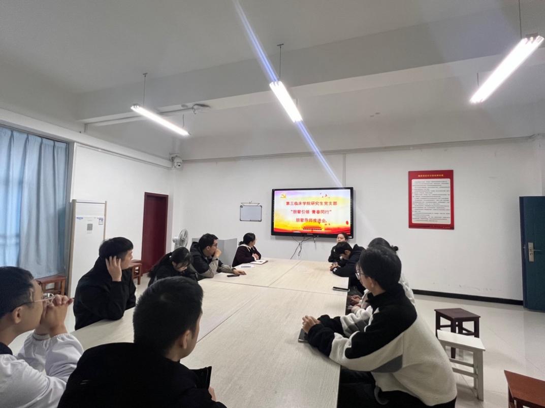 本网讯(通讯员 崔子恒 赵晓燕)10月23日下午,第三临床学院研究生党支部在教学楼201室开展“研途逐光 医心向党”分享会,支部所有成员参加活动,活动由学院副书记、研究生党支部书记李芹主持。